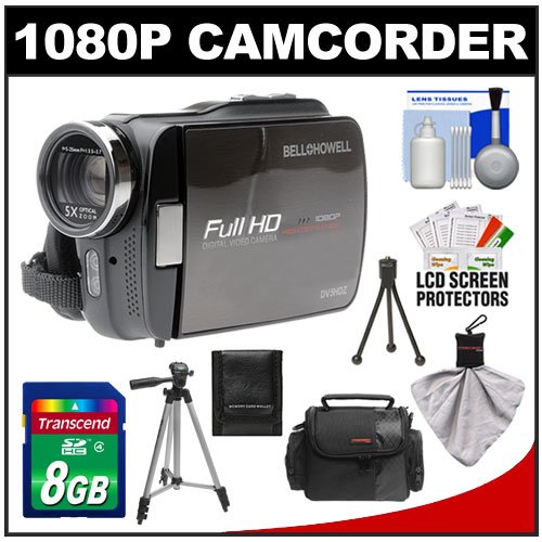 Discount Bell & Howell DV5HDZ ZoomTouch 1080p HD High Definition Digital Video Camcorder & Case with 8GB Card + Case + Tripod + Cleaning Accessory Kit Deals Pros