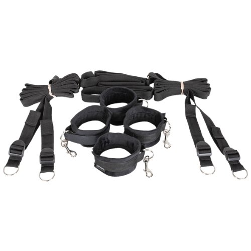 Turn any size bed into a place of binding pleasure. Restraint straps quickly fit beneath mattress or frame without hooks. Restrain your partner's arms or legs from the sides or the top and bottom of the bed.